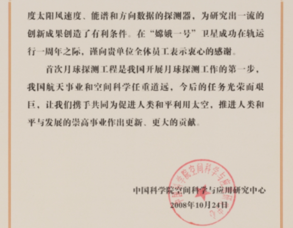 中國(guó)科學(xué)院空間科學(xué)與應(yīng)用研究中心感謝信